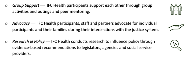 IFC Health is a men's support and advocacy program designed to wholistically support Black men on their journey through family-related legal challenges. The IFC (Individuals, Families, and Communities) Health model includes evidence-based behavioral, emotional, legal and financial support components.